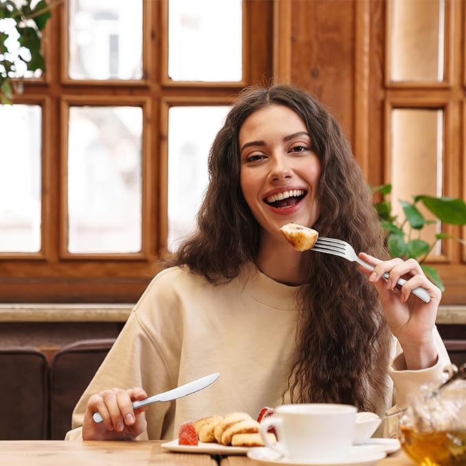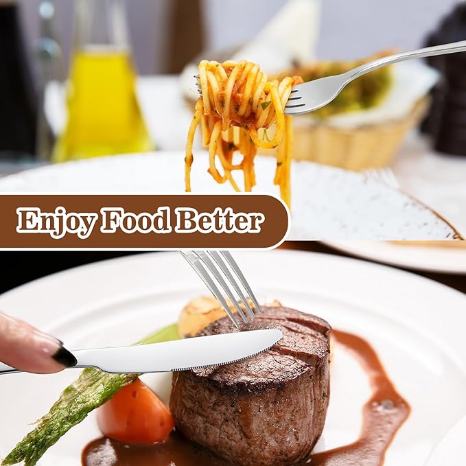 - Quality Material: the forks and knives set is crafted with quality stainless steel; The durability of this material ensures that the utensils will not warp, discolor, or bend easily, which adds longevity, at the same time, it is also dishwasher safe, bringing you convenience
