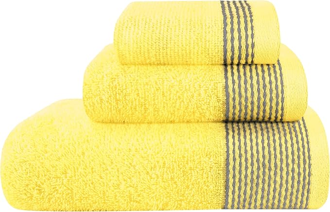 Belizzi Home Ultra Soft 3 Pack Cotton Towel Set, Contains a Bath Towel 28x55 inch, a Hand Towel 16x24 inch & a Wash Coth 12x12 inch, Ideal Everyday use, Compact & Lightweight -Yellow