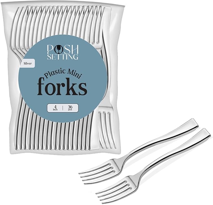 - STYLISH SILVER FINISH: Impress your guests with these mini dessert forks, featuring a brilliant silver color that adds elegance to any occasion. Perfect for weddings, birthdays, or corporate events, these tiny forks make every bite feel luxurious. Impress your guests with every bite of small silver forks plastic at your next event.