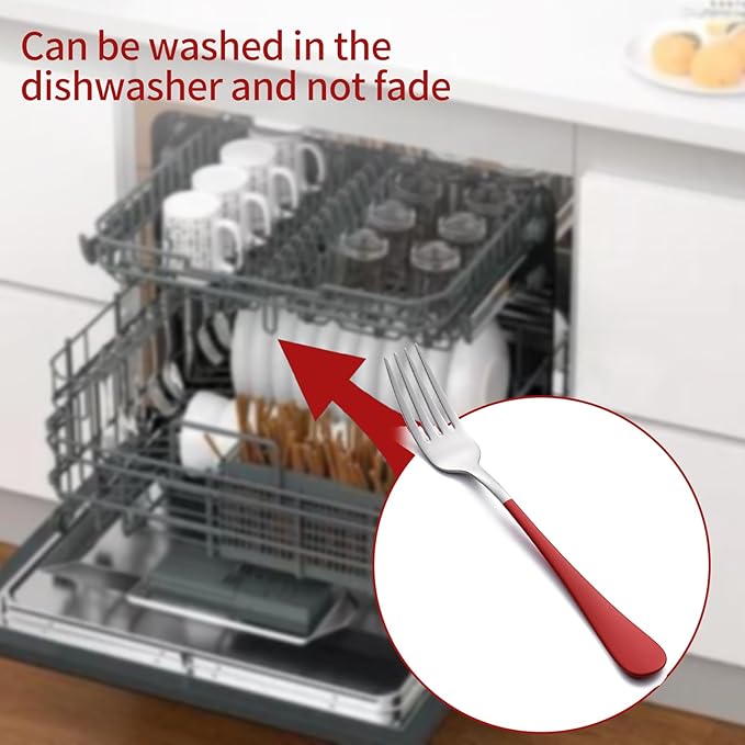 Red and Black Dinne Forks Set 24 Piece,Red and Black Handle Silverware Forks 18/0 Stainless Steel Flatware Bulk Forks,8.1-inch Dessert Forks Sets Table Forks Set of 24, Dishwasher Safe