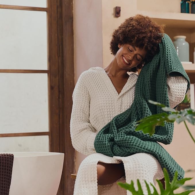 Luxury Organic Japanese Cotton Waffle Bath Towel | Thick, Absorbent, Quick Dry Bathroom Towels for Shower, Sauna, Onsen| Hotel & Spa Quality, Gift-Ready (Forest Green, Bath Towel, 55" x 34")