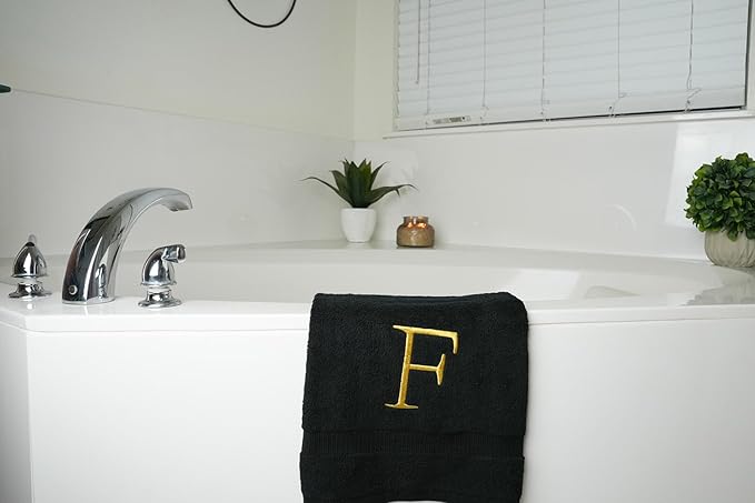 - Premium Quality - High quality durable soft rich monogram letter hand towels in black cotton with gold stitching