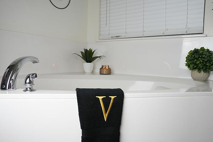 - Premium Quality - High quality durable soft rich monogram letter hand towels in black cotton with gold stitching