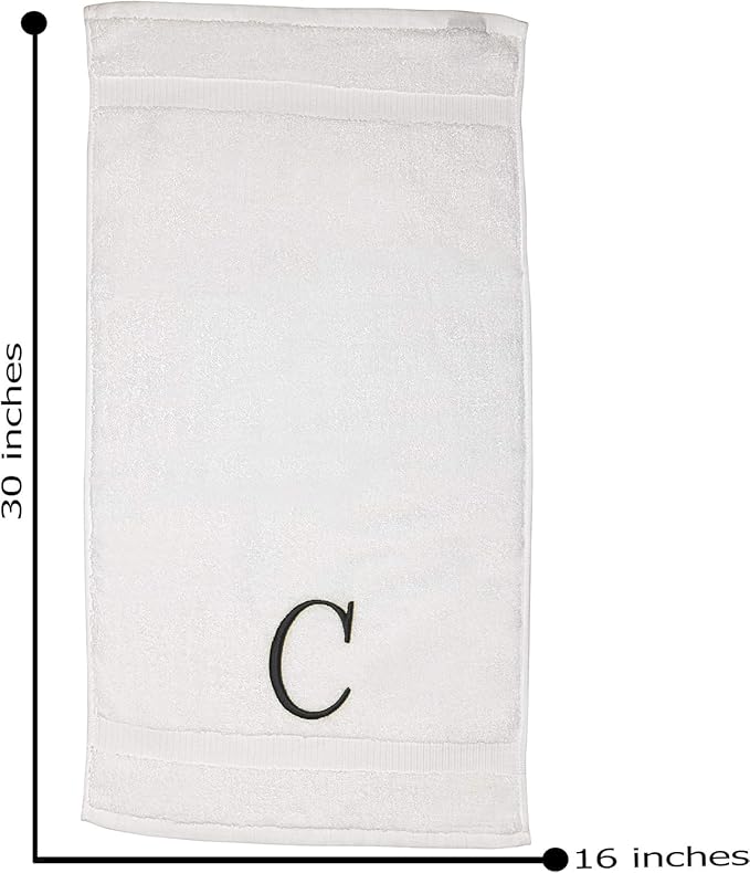 - Dimensions - The monogrammed initial hand towel measures 30 inches long by 16 inches wide. The capital letter measures roughly 3 inches by 4 inches which may vary depending on the intial