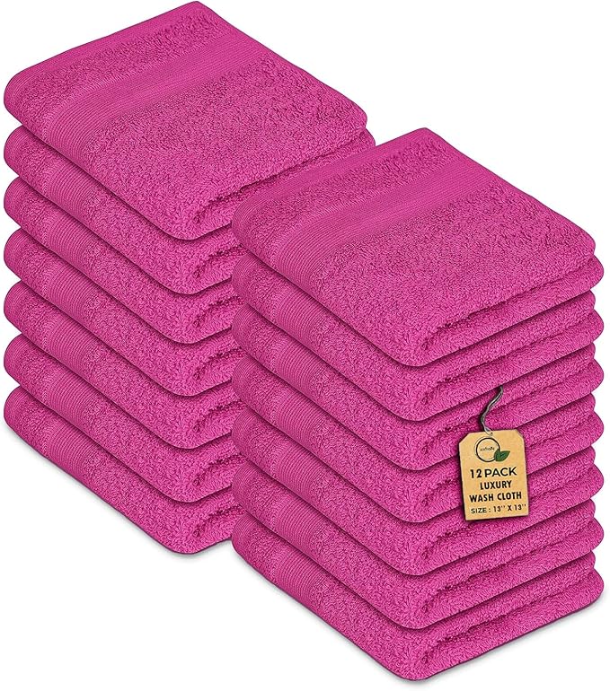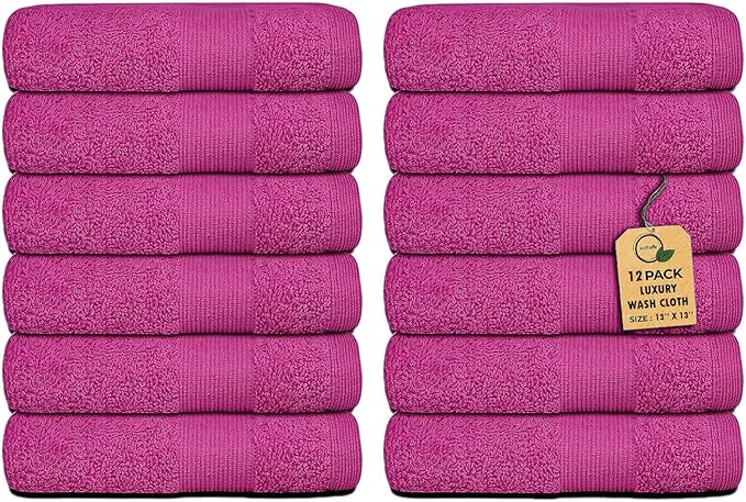 Premium Wash Cloths Pack of 12 (13" x 13") 100% Ring Spun Cotton | Luxury Washcloths | Ultra Soft Face Towels | Highly Absorbent Wash Cloths for face (Dark Pink)