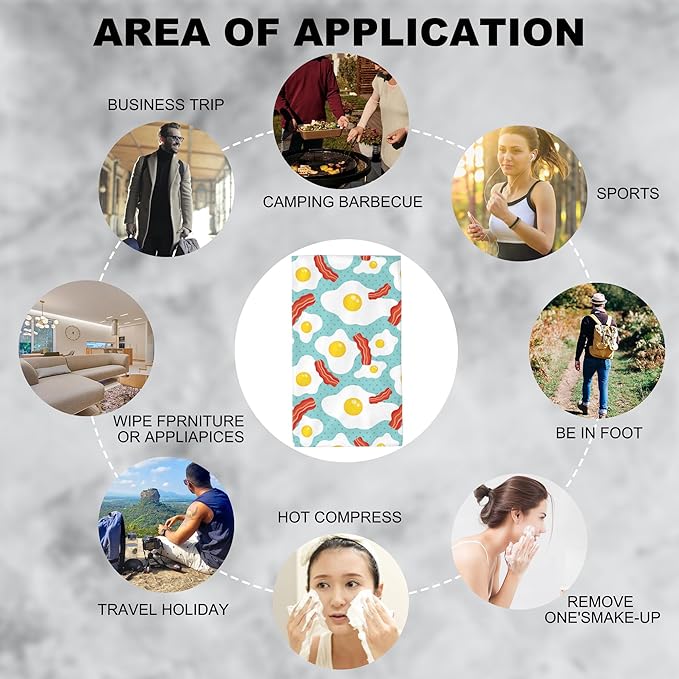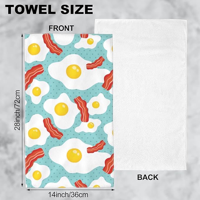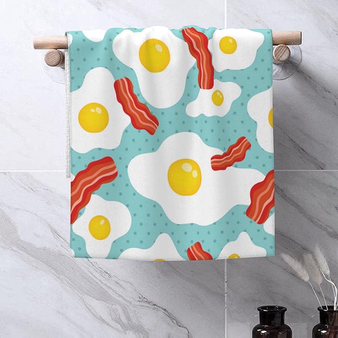 - ❤【Multi-Function】:Eggs and bacon hand towels can be used as dish towels, hand towels, bath towels, and kitchen towels, great to fit for a bathroom,pool,home,kitchen,hotel,gym and spa.These towels can be a wonderful decoration for your bathroom, kitchen, hotels etc