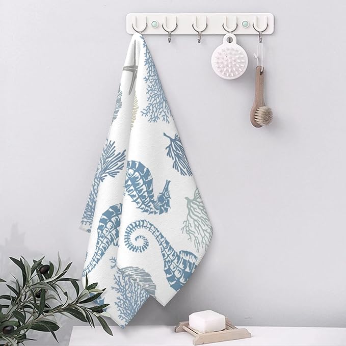 Ocean Marine Hand Towel,Seahorse and Coral Hand Bath Towels Set of 2 Dish Towels Soft Absorbent Decorative Hand Towels for Bathroom Kitchen Yoga Home Decor 14 x 28 in