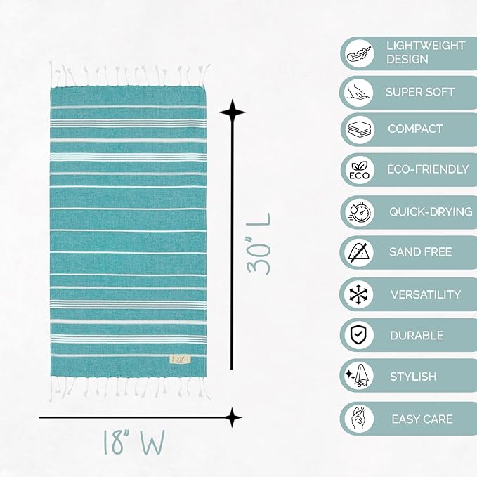Hand Towels - Set of 2, 18" x 30" inches, Cotton Turkish Hand Towel Sets Clearance, Hand Face Towels, Decorative Peshtemal Turkish Hand Towels (Petrol)