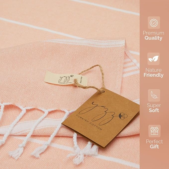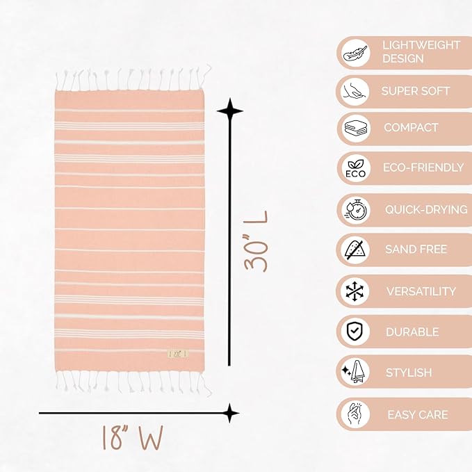 Hand Towels - Set of 2, 18" x 30" inches, Decorative Peshtemal Cotton Hand Towels for Kitchen, Bath, Guest, Face, Hair, Gym, Yoga, Dishcloth, Travel (Salmon)
