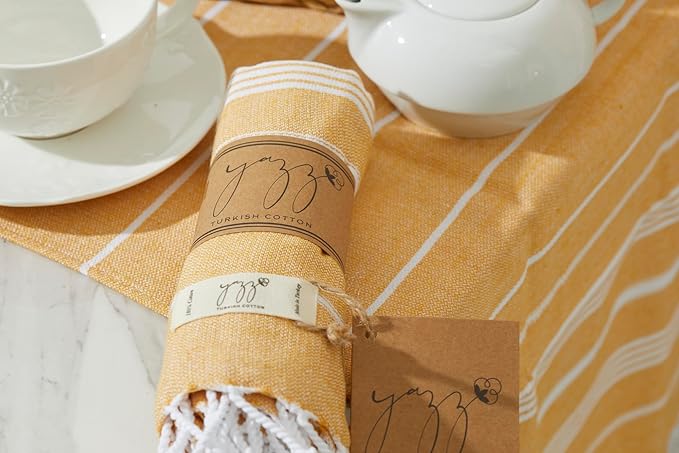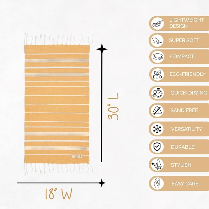 Hand Towels - Set of 2, 18" x 30" inches, Decorative Peshtemal Cotton Hand Towels for Kitchen, Bath, Guest, Face, Hair, Gym, Yoga, Dishcloth, Travel (Mustard Yellow)