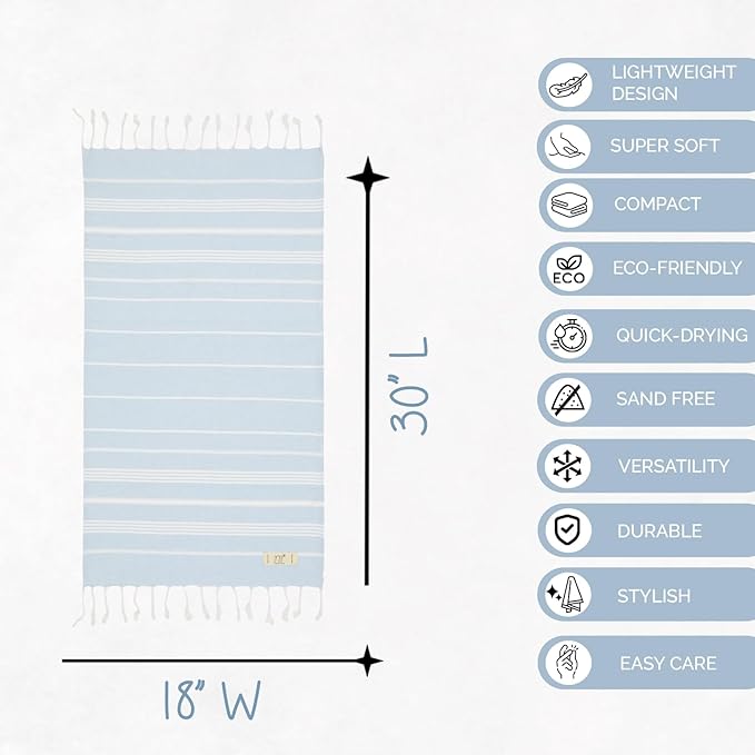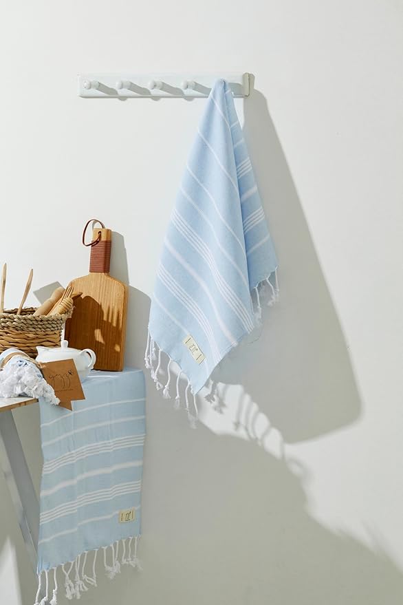 Hand Towels - Set of 2, 18" x 30" inches, Cotton, Decorative Peshtemal Cotton Hand Towels for Kitchen, Bath, Guest, Face, Hair, Gym, Yoga, Dishcloth, Travel (Baby Blue)
