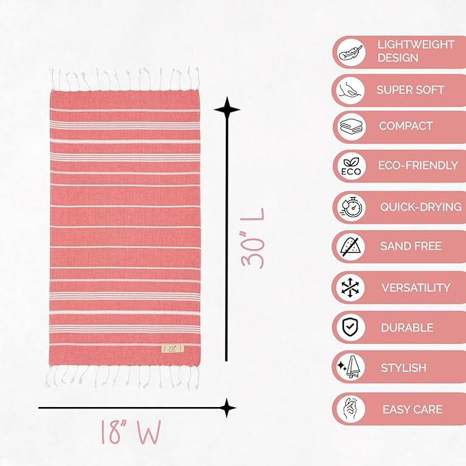 Hand Towels - Set of 2, 18" x 30" inches, Decorative Peshtemal Cotton Hand Towels for Kitchen, Bath, Guest, Face, Hair, Gym, Yoga, Dishcloth, Travel (Coral)