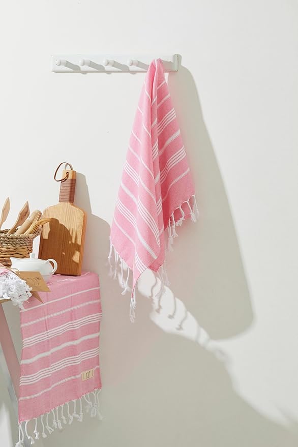 Turkish Hand Towels - Set of 2, 18" x 30" inches, Lightweight Cotton Towel Prewashed Hand Towels for Kitchen, Bath, Guest, Face, Hair, Gym, Yoga, Dishcloth, Travel (Pink)