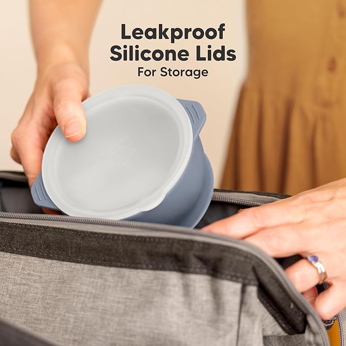 - Better Silicone - KeaBabies Prep Silicone Suction Baby Bowls with Lids are 100% food-grade, BPA-free. Our toddler bowls are durable, non-toxic with suction bottoms and leakproof lids to prevent spills. Microwave, dishwasher and freezer safe.