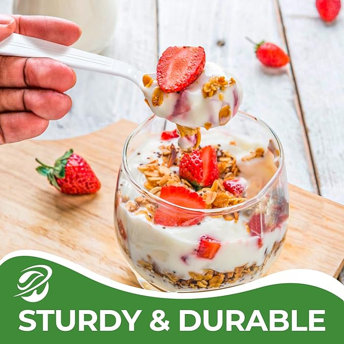 - Versatile and Practical: Our heavy duty disposable plastic fork and spoon is perfect for various occasions such as picnics, camping trips, parties, weddings, or everyday use at home. Their outstanding quality and craftsmanship can also be a decorative addition to any table! The high quality ensures that they can be used for ice cream, steak, desserts or scooping up soup effortlessly