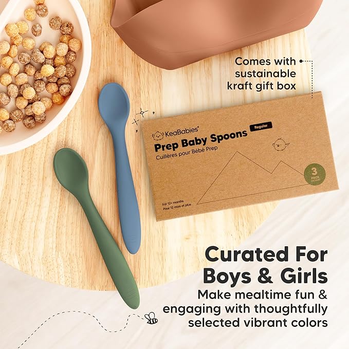 - Safer Silicone - KeaBabies 3-Pack Prep Silicone Baby Spoons Set is made from 100% food-grade, BPA-free silicone. With a topple-free handle and comfort sized scoop, these infant spoons help BLW babies build confidence as they learn self-feeding.