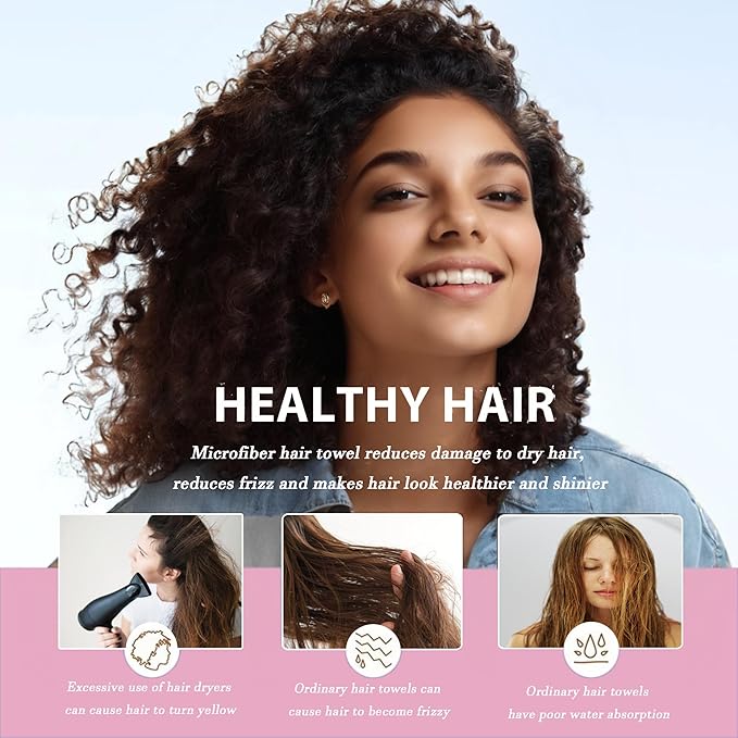 - High-Quality Microfiber Material:The hair drying towel is made of coral fleece, a microfiber material known for its excellent absorbency. It quickly absorbs excess moisture from the hair, shortening the drying time and minimizing damage to the hair caused by heat styling. Absorbing more than 10 times its weight in water, it is one of the most absorbent towels on the market. This means it dries hair faster and more efficiently.