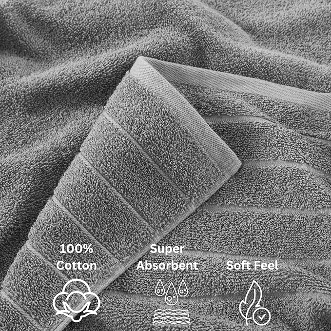 Casa Platino 100% Cotton 18 Piece Bath Towel Set - Ring Spun, Quick Dry, Super Soft & Highly Absorbent - 6 Bath, 6 Washcloths, 6 Bathroom Hand Towels - Hotel Quality Bathroom Towel Set - Ultimate Grey
