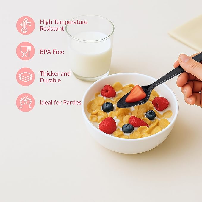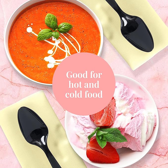 - Heavy Duty Plastic Spoons for Parties: These strong disposable plastic spoons are built to handle hot soups, cold desserts, and hearty dishes without bending, cracking, or snapping during any event