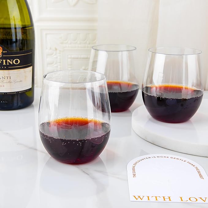 - 【Suitable For Any Beverage & Occasions】:The plastic stemless wine glass are suitable for serving any beverage, such as wine, cocktail, whisky, chardonnay, champagne and juice. They are also suitable for any occasion, such as parties, bars, weddings, weddings, graduation ceremonies, receptions, etc.