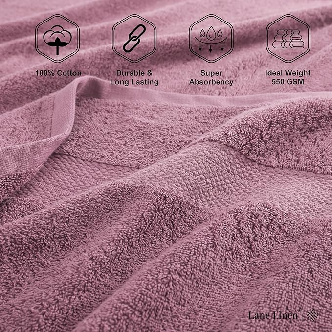 LANE LINEN Premium Bath Towels Set of 4 (28"x54") - 100% Ring Spun Cotton Bathroom Towel 4 Pack - Quick Drying, Super Soft, Durable & Absorbent Large Towels Set - Oeko Tex Certified - Wistful Mauve