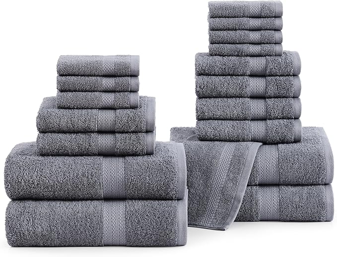 LANE LINEN 100% Cotton Bath Towel Set - Sustainably Produced, 18PCs Towels for Bathroom - 6 Hand, 8 Washcloths, 4 Shower Towels - Machine Washable, Quick Drying, Highly Absorbent - Cool Grey