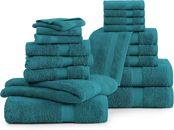 LANE LINEN 100% Ring Spun Cotton Bath Towel Set, 18PCs - 8 Washcloths, 4 Shower Towels, 6 Hand Towels for Bathroom - Hotel Quality Softness & Oeko-Tex Certified, Ultra Absorbent - Sea Port