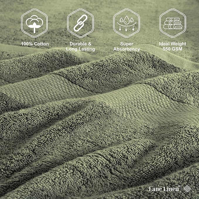 LANE LINEN 100% Mercerized Cotton Bath Sheet Set of 4 (35"x66") - Quick Drying, Ultra Soft & Durable Extra Large Towel Sets - Fade Resistant, Highly Absorbent - Oversized Daily Use Towels - Oil Green