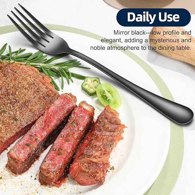 - [ Black forks replaces the traditional silver forks]--If you want to get away from the traditional silver fork, I invite you to try our beautiful set of black forks. Don't worry about the black coating disappearing.