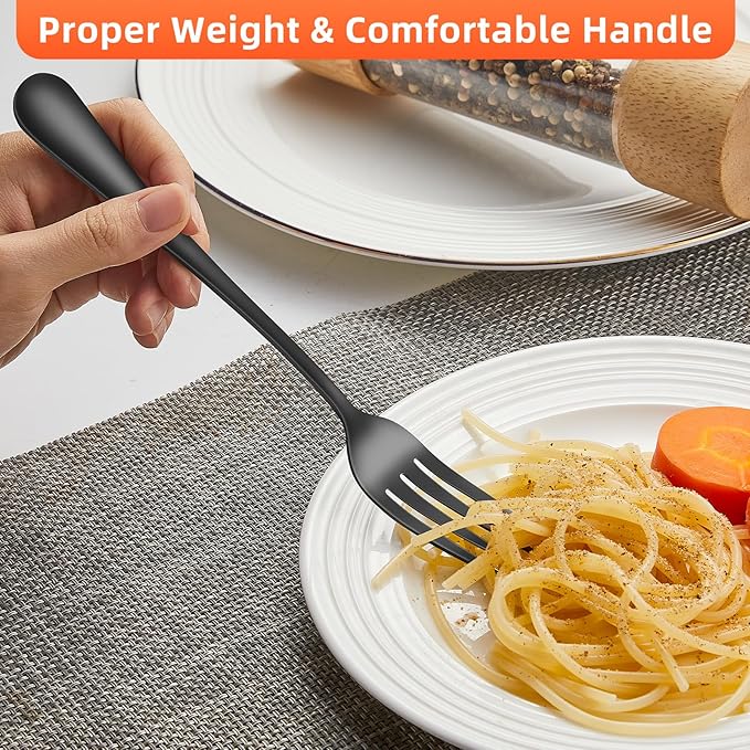 12 Piece Dinner Forks, 8 Inch, Top Food Grade Extra-Fine Stainless Steel Silverware Forks,Silverware Set, Dishwasher Safe (Black)