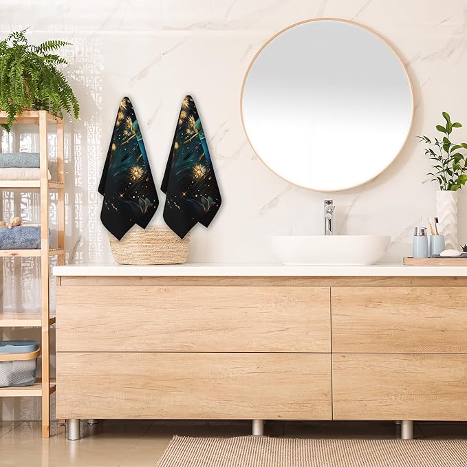 2 Pack Hand Towels for Bathroom,Glowing Dragonfly Decorative Kitchen Towels Highly Absorbent Soft Towels for Bathroom Beach Spa Gym Face Towel 14x28 Inch