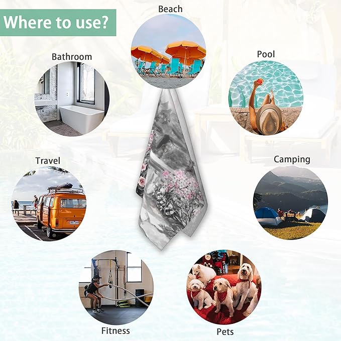 - High-Quality Microfiber Construction: Experience ultimate comfort with our modern bath towels made from polyester microfiber on the front and premium white cotton on the back. These towels are super soft, lightweight, highly absorbent, and quick-drying. Our production process is free from harmful substances, ensuring hassle-free cleaning without any risk to your skin. Enjoy luxury and practicality in one.