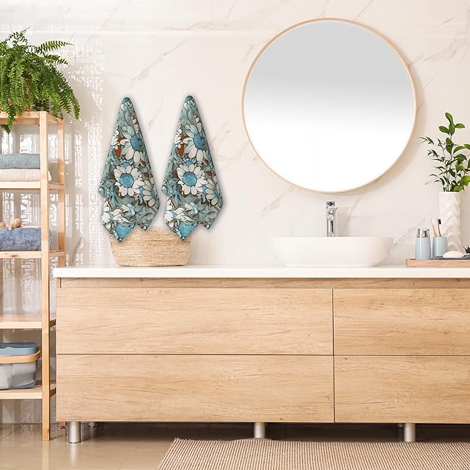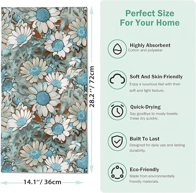 Teal Daisy Flowers Hand Towels for Bathroom,Field Flowers Hand Towel Set of 2 Face Washcloths Fingertip Kitchen Towels 28 x 14 Inch Soft Towels for Gym Hotel