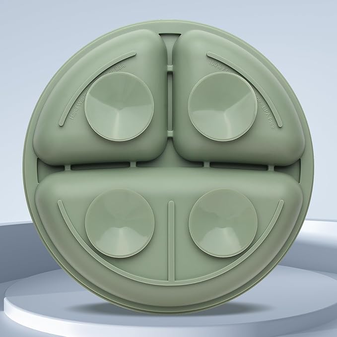- Divided Suction Plates for Baby: Our toddler plates feature divided compartments in different sizes, perfect for parents to dispense different flavors of food. The kids plates 4 strong suction cups on the bottom of the plate, evenly distributed, we put the plate on smooth surfaces, especially high chairs and trays, it stays in place throughout the meal, a baby feeding essentials!