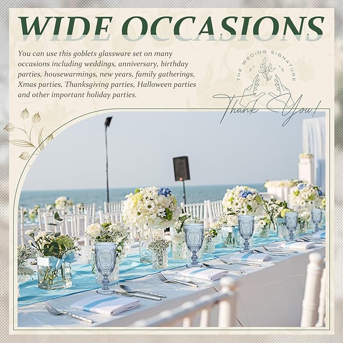 - Wide Occasions: you can use this plastic goblets set on many occasions including weddings, anniversary, birthday parties, housewarmings, new years, family gatherings, Xmas parties, Thanksgiving parties, Halloween parties and other important holiday parties