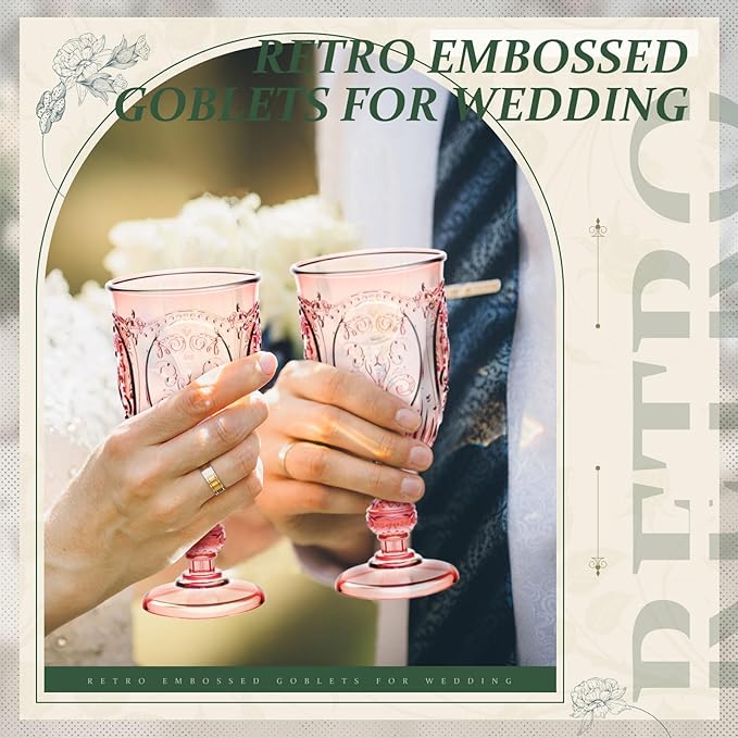 - Elegant Design: our vintage wine glasses set features a European vintage style and embossed design, comfortable to hold in the hand; Use our cups to sip your favorite drinks with your guests at your party and experience the irresistible vintage beauty, add a touch of romantic to your party and impress your guests