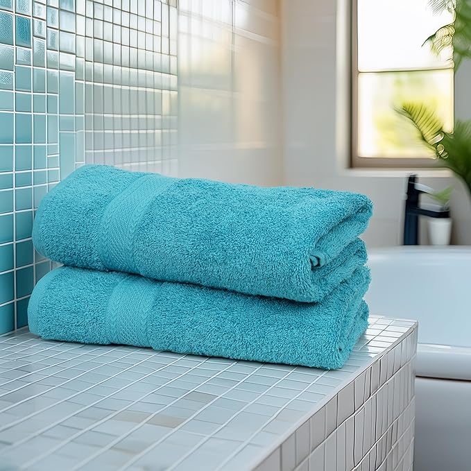 Large Bath Towels Set of 6 – 100% Cotton Terry – 24" x 50" – Quick Dry, Soft & Highly Absorbent – Teal Blue Towels for Bathroom, Gym, Spa, Pool & Daily Use