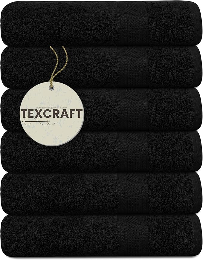 Large Bath Towels Set of 6 – 100% Cotton Terry – 24" x 50" – Quick Dry, Soft & Highly Absorbent – Black Towels for Bathroom, Gym, Spa, Pool & Daily Use