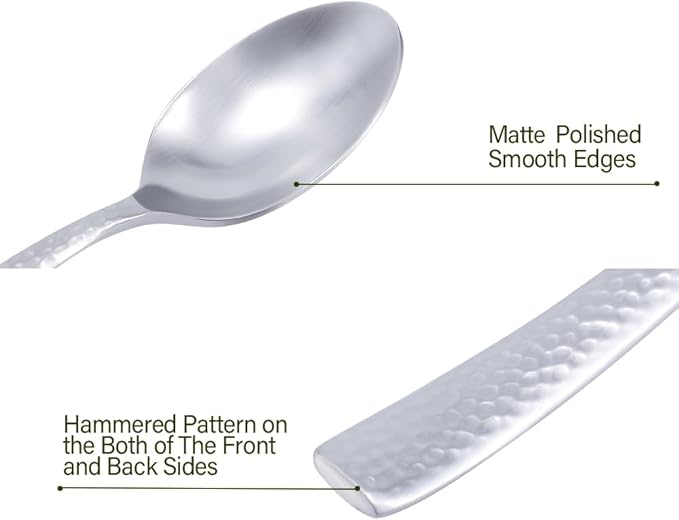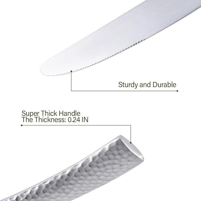- 【APPEARANCE AND DESIGN】Silver color and matte polish, unique design with hammered handle, dishwasher safe