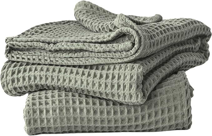 - EASY CARE: These durable sage green waffle bath towels are machine washable (40°C/104°F) and designed to become even softer with each wash. For optimal performance and longevity, wash separately before first use, and always avoid bleach.