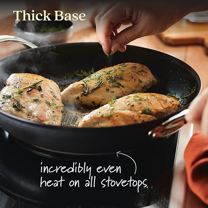 - INNOVATIVE BASE: Hybrid nonstick frying pans feature a thick, uniquely constructed stainless steel base that stays flat while delivering incredibly even heat on any cooktop, including induction