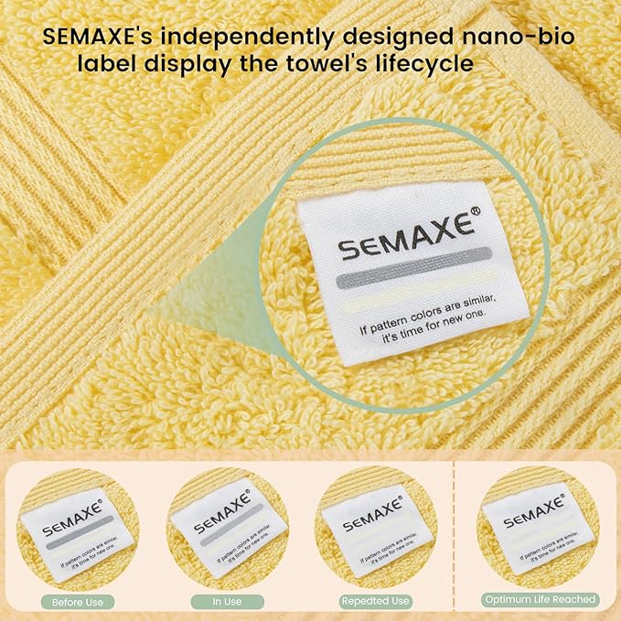 - 【Innovation】SEMAXE's independently designed nano-bio label can display the towel's lifecycle. If the two stripe colors are the same, it is recommended to replace.