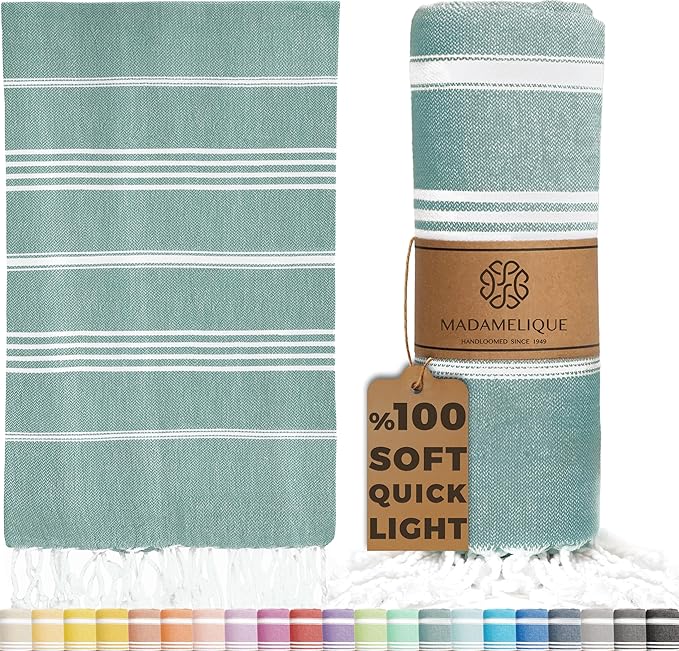 Madamelique Turkish Beach Towel Oversized - 39 x 74 - Quick Dry - Sand Free - Extra Large - Prewashed Beach Towels - Summer Gift - Beach Essentials - Travel Towel (Mediterranean Without Bag, Teal)