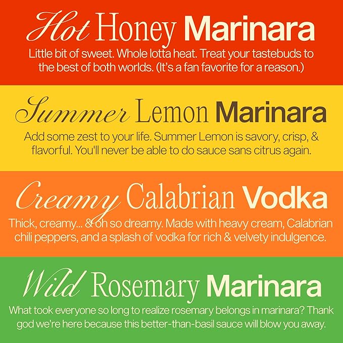 Sauz | Variety Pack, 25 Oz Jars (4-Pack), Includes Hot Honey Marinara, Creamy Calabrian Vodka, Wild Rosemary, Summer Lemon, Gluten-Free, Non-GMO, Multi-Use, Clean Ingredients – Small Batch Craft Sauces