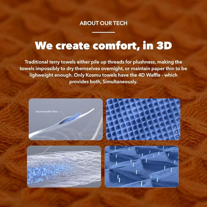- šØGet bone dry every A.M.: While the waffle structure intrinsically maximizes surface exposure for airflow for guaranteed breathability, allowing the towel to dry itself out quickly, we have fundamentally improved the performance of Kosmu Towel with advanced science and technology.