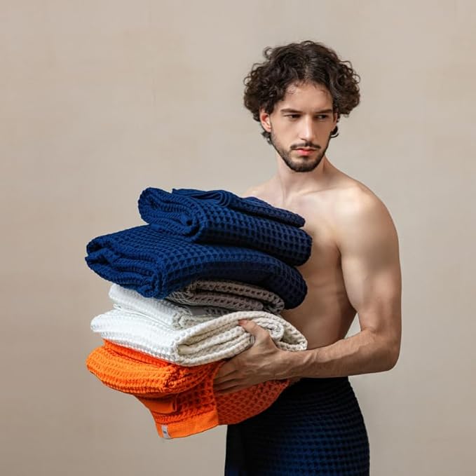 - šA Dry Towel is a Clean Towel: The airy waffles effectively prevent the multiplication of odor caused by bacteria and fungus. You will never reach out to a wet, musty towel after a shower anymore.