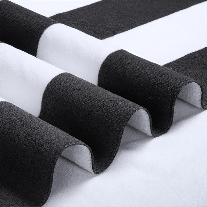 WILFA Extra Large Beach Towel - Oversized Mircofiber Beach Towel 40'' x 70'', XL Striped Lightweight Pool Towel, Big Cabana Swim Travel Towel for Adults Mens Women,Black