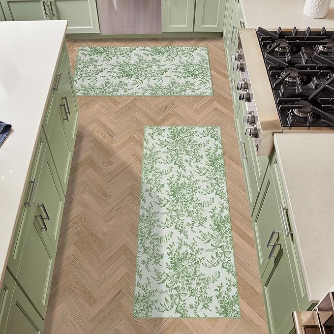 Laura Ashley Sage Ivory Bedford Floral Machine Washable & Slip Resistant 2 Piece Set - 26" x 45" Accent Rug & 26" x60" Runner Rug