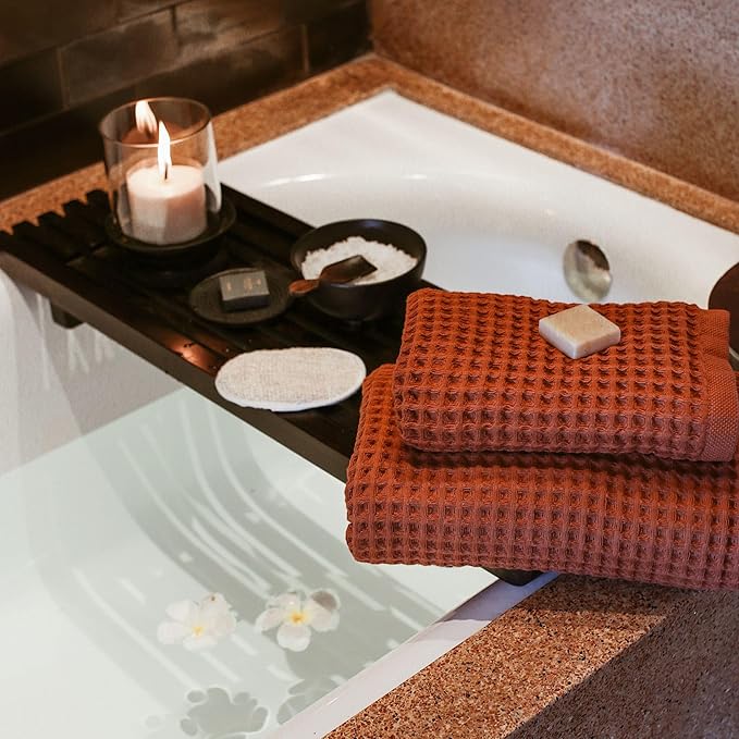- Upgrade to spa status with our luxuriously soft spa-like towels. Pamper your skin and hair with our exclusive, waffle weave fabric. It's free from harmful chemicals and extra gentle on delicate skin.