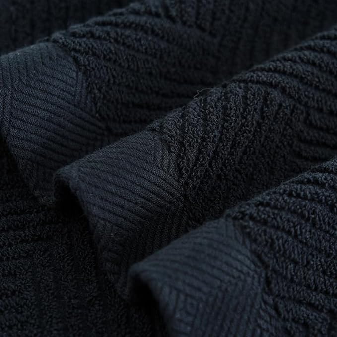 sense gnosis Black Hand Towels Terry Striped Weave Pattern Ultra Absorbent Super Soft 100% Cotton Hand Towel for Bathroom 13 X 29 Inch, 2 Pieces